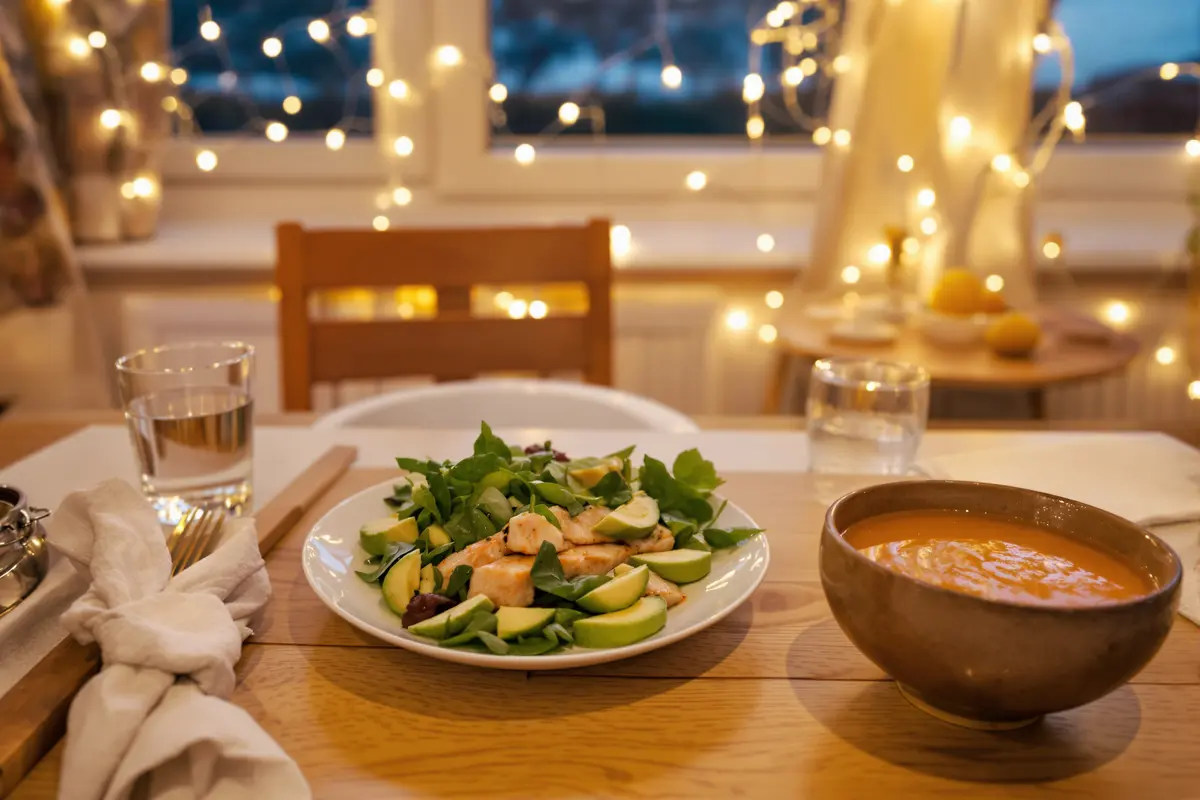 El objetivo no es “comer poquito” por miedo, sino sentirte bien en la fiesta, con energía, liviano y con ganas de disfrutar cada momento. Una cena ligera, rica y equilibrada pone tu cuerpo en modo celebración, sin privaciones ni excesos previos.